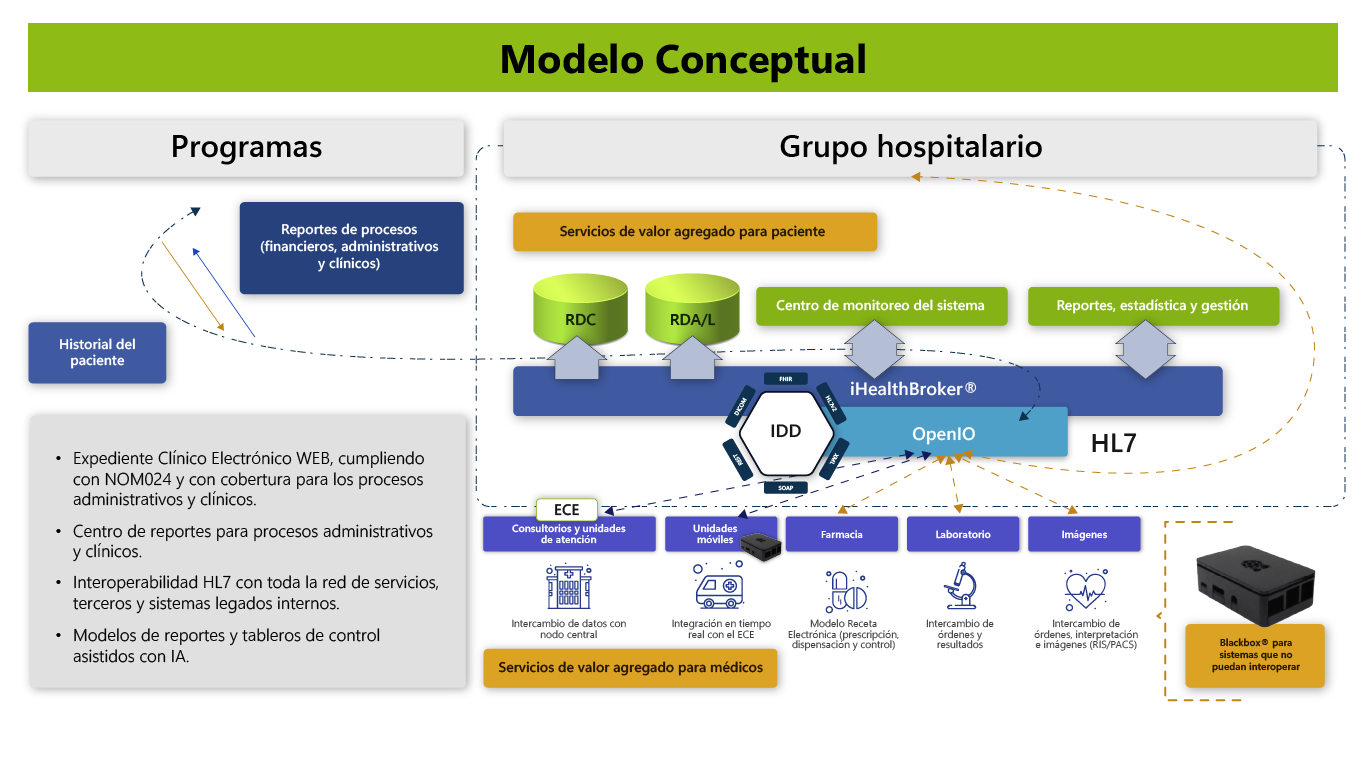 - Cumple normas HL7 y NOM024: garantiza interoperabilidad y cumplimiento legal.