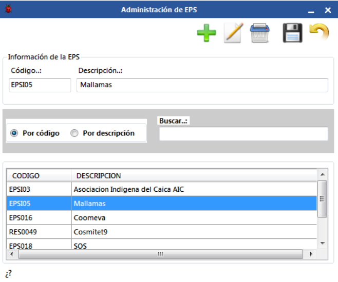 Administración de: la entidad, punto atención, ocupaciones, EPS, usuarios del sistema