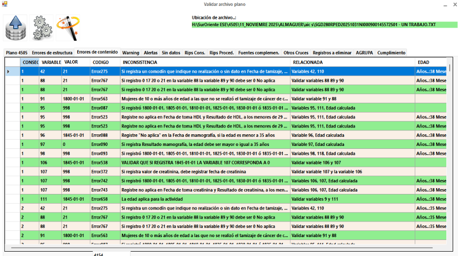Los errores frecuentes en la validación de archivos planos según la Resolución 4505 suelen estar relacionados con la estructura, contenido y formato del reporte. Entre los más comunes están:
